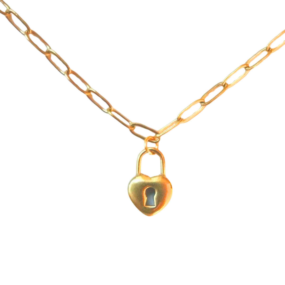 Heart lock necklace, gold necklace, silver necklace, handmade jewelry, adjustable necklace, custom jewelry, charm necklace
